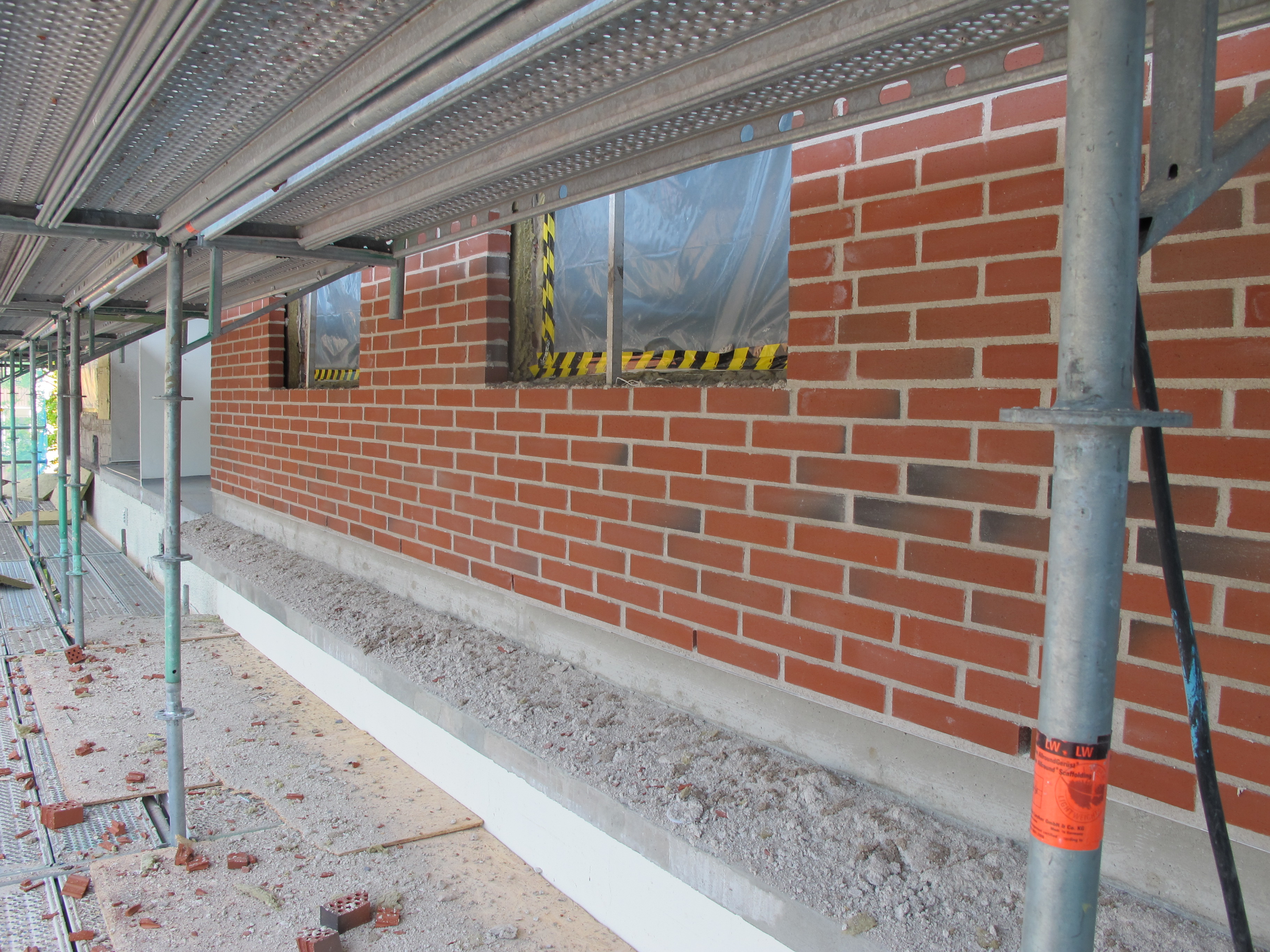 Förbredelser för murningen av ny tegelfasad har påbörjats.